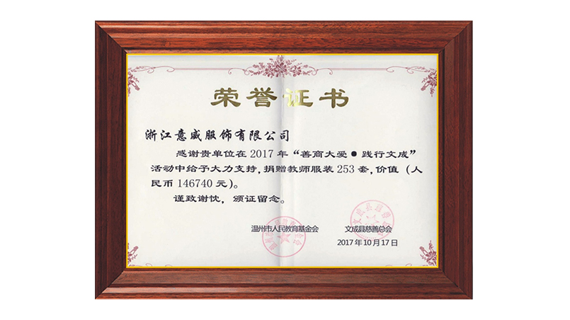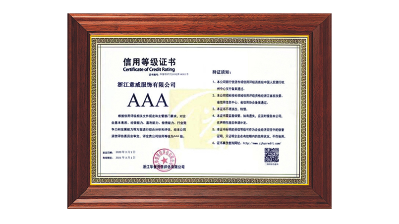 企業注冊 資 本金增資至5800萬,升級為(wèi)浙江意威服飾有(yǒu)限公(gōng)司。開啓浙江意威發展第二個三年計劃。